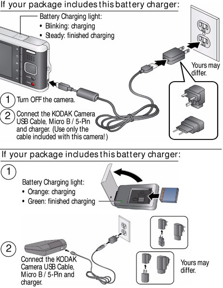 Use the KODAK Camera USB Cable, Micro B / 5-Pin to connect camera to computer.