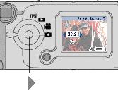 Bewegen Sie den Joystick   , um den Zoom-Vorgang zu starten. Halten Sie die Taste gedrückt, um das Bild weiter zu vergrößern, oder lassen Sie die Taste zu einem beliebigen Zeitpunkt los. Auf dem LCD-Monitor werden das gezoomte Bild und der Zoom-Faktor angezeigt. | |||