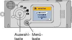 | HINWEIS: | Wenn der derzeitige Speicherort nicht über genügend Speicherplatz zum Aufzeichnen der festgelegten Videolänge verfügt, leuchtet die Bereitschaftsanzeige beim Ausschalten des Menüs rot auf. Wenn Sie trotzdem versuchen, ein Video aufzuzeichnen, wird die Meldung "Speicher voll" angezeigt. Informationen über die Videospeicherkapazität finden Sie auf Speicherkapazität von Karten. |