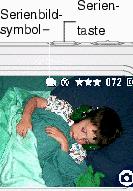 Mit der Serienbildfunktion können Sie bis zu vier Bilder in schneller Folge aufnehmen (ca. 1,4 Bilder pro Sekunde). Diese Funktion ist besonders geeignet für Sportveranstaltungen und alle Motive, bei denen sich die entsprechenden Objekte bewegen. Bei Verwendung der Serienbildfunktion sind die Funktionen "Blitz" und "Selbstauslöser" ausgeschaltet.