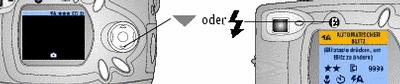 *Das blinkende Batteriesymbol weist darauf hin, dass der Ladestand der Batterie für den Betrieb der Kamera nicht ausreicht. Die rote Bereitschafts-lampe blinkt fünf Sekunden lang, anschließend schaltet sich die Kamera aus.