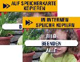 Sie können Bilder von einer Karte in den internen Speicher oder vom internen Speicher auf eine Karte kopieren.
