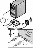 | WICHTIG: | Beim Anschließen der Kamerastation an den Netzstrom und an den Computer darf sich die Kamera NICHT in der Kamerastation befinden. |