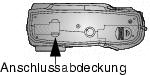 Schieben Sie die Anschlussabdeckung auf der Unterseite der Kamera beiseite.