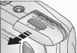 Schieben Sie die Batteriefachabdeckung an der Unterseite der Kamera in Pfeilrichtung, um die Abdeckung zu öffnen.