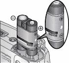 Falls Sie einen optional erhältlichen Kodak EasyShare Wiederaufladbaren Ni-MH- Batteriepack erworben haben (der Batterie- pack ist auch im Lieferumfang der Kodak EasyShare Kamerastation bzw. Kamerastation mit Druckfunktion enthalten), legen Sie ihn wie in der Abbildung dargestellt ein. |