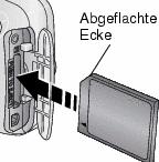 Halten Sie die Speicherkarte wie auf dem Äußeren der Kamera dargestellt.