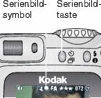 Mit der Serienbildfunktion können Sie bis zu drei Bilder in schneller Folge aufnehmen (ca. 3 Bilder pro Sekunde). Diese Funktion eignet sich besonders für Sportveranstaltungen und alle Motive, bei denen sich die entsprechenden Objekte bewegen. Blitz und Selbstauslöser sind bei der Serienbildfunktion deaktiviert.