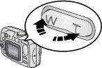 Drücken Sie die Teleaufnahmetaste (T), um das Motiv zu vergrößern. Drücken Sie die Weitwinkeltaste (W), um das Motiv zu verkleinern.