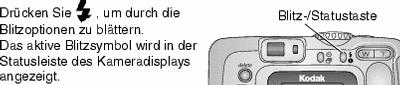 Verfügbare Blitzeinstellungen (Drücken Sie zum Ändern die Blitztaste.) |