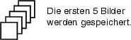 Die Kamera nimmt bis zu 5 Bilder auf (3 Bilder pro Sekunde), während der Auslöser gedrückt wird. |