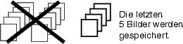 Die Kamera nimmt bis zu 30 Bilder auf (3 Bilder pro Sekunde), während der Auslöser gedrückt wird. Wenn der Auslöser losgelassen wird, werden nur die letzten 5 Bilder gespeichert. |