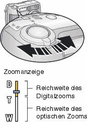 Wenn das Kameradisplay eingeschaltet ist, zeigt die Zoomanzeige an, ob Sie sich im optischen oder im Digitalzoom befinden. |