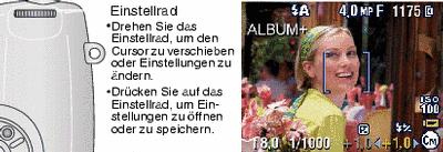 Verwenden des Einstellrads zum Ändern von Einstellungen in den Modi P, A, S, M und C