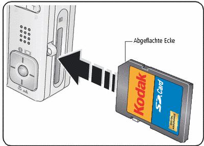 Die Kamera verfügt über einen internen Speicher. Sie können eine SD- oder MMC-Speicherkarte erwerben, um mühelos eine größere Anzahl von Bildern und Videos zu speichern (www.kodak.com/go/v603accessories). Die besten Ergebnisse erzielen Sie mit Kodak SD- oder MMC-Speicherkarten.