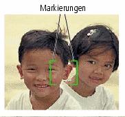 Wenn das gewünschte Motiv nicht scharf gestellt wird (oder die Markierungen ausgeblendet werden), lassen Sie den Auslöser los, und richten Sie das Motiv erneut ein.