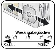 , um einen Rücklauf mit 2facher Geschwindigkeit durchzuführen. Drücken Sie die Taste ein weiteres Mal, um ihn mit 4facher Geschwindigkeit durchzuführen.