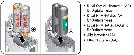 Inhaltsverzeichnis > Einrichten der Kamera > Einlegen der Batterie