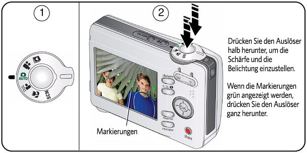 Wenn das gewünschte Motiv nicht scharf gestellt wird (oder die Markierungen ausgeblendet werden), lassen Sie den Auslöser los, und richten Sie das Motiv erneut ein.