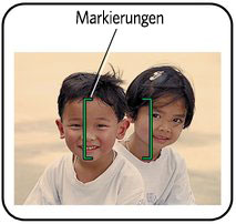 Markierungen zeigen an, worauf die Kamera fokussiert ist. Die Kamera fokussiert Vordergrundmotive, auch wenn die Motive nicht in der Szene zentriert sind.