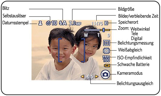 Aufnahmemodus; der Auslöser wurde halb heruntergedrückt