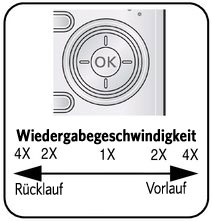 , um einen Rücklauf mit 2facher oder 4facher Geschwindigkeit durchzuführen.