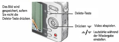 Nachdem Sie ein Bild oder Video aufgenommen haben, wird auf dem LCD-Display etwa zehn Sekunden lang eine Schnellansicht des Bilds oder Videos angezeigt. (Beenden Sie die Schnellansicht vor Ablauf dieser Zeit, indem Sie den Auslöser halb herunterdrücken.)