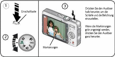 Wenn das gewünschte Motiv nicht scharf gestellt wird (oder die Markierungen ausgeblendet werden), lassen Sie den Auslöser los, und richten Sie das Motiv erneut ein.