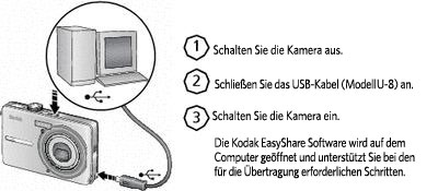 | HINWEIS: | Ein Online-Lernprogramm zum Herstellen der Verbindung finden Sie im Internet unter www.kodak.com/go/howto. |