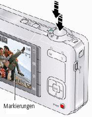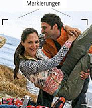 Markierungen zeigen an, worauf die Kamera fokussiert ist. | ||