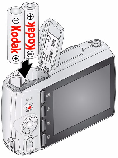 Inhaltsverzeichnis > Einrichten der Kamera > Einlegen der Batterien bzw. Akkus vom Typ AA