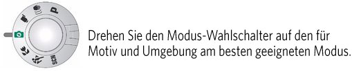 Für einfache und schnelle Aufnahmen in nahezu jeder Situation. (Siehe Verwenden von Motivmodi (SCN).)  |