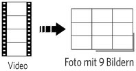 Sie haben die Möglichkeit, von einem Video ein Foto mit 9 Bildern anzufertigen, das sich für einen Ausdruck im Format 10 cm x 15 cm (4" x 6") eignet.