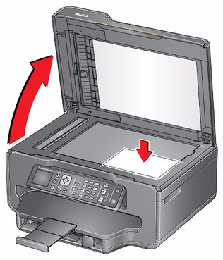 Heben Sie die Scannerabdeckung an, und legen Sie das Dokument oder Bild mit der bedruckten Seite nach unten in die vordere rechte Ecke.