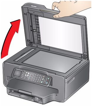 Trennen Sie den Drucker von der Stromversorgung, und heben Sie die Scannerabdeckung an.