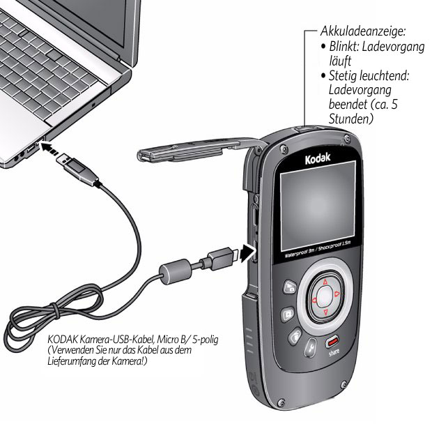 Inhaltsverzeichnis > Einrichten der Kamera > Aufladen über USB-Kabel