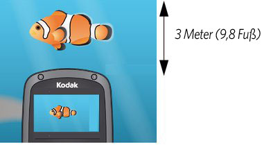 Die Kamera schwimmt nicht im Wasser. Sichern Sie die Kamera mit einem Tragegurt, um zu verhindern, dass sie untergeht. (Siehe der schwimmende Tragegurt im Zubehör unter www.kodak.com/go/accessories.) Schließen Sie alle Abdeckungen fest, damit die Kamera wasserdicht bleibt. Öffnen Sie keine der Abdeckungen unter Wasser oder mit nassen Händen. Wenn die Kamera fallen gelassen wird, ist sie möglicherweise nicht mehr völlig wasserdicht. Weitere Informationen finden Sie unter .