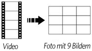 Sie haben die Möglichkeit, von einem Video ein Foto mit 9 Bildern anzufertigen, das sich für einen Ausdruck im Format 10 cm x 15 cm (4" x 6") eignet.