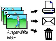 Wählen Sie die Funktion für die Auswahl von mehreren Elementen, wenn Sie mehrere Bilder drucken, weitergeben, löschen, mit Löschschutz versehen, den Löschschutz entfernen, mit Schlüsselwörtern kennzeichnen usw. möchten. Der Einsatz dieser Funktion bietet sich besonders im Multi-Up-Modus an. (Siehe Anzeige von Bildern und Videos als Miniaturbilder (Multi-Up).)