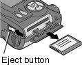 On the bottom of the camera, slide the Eject button as illustrated and remove the card.
