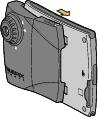 Push the camera latches forward and fit the camera tabs into the indents in the PALM Handheld.
