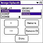 To add a picture to the Upload List, highlight it in the Image List and tap the single arrow button to add it to the Upload List.