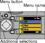 The method of moving through the menus and selecting options is the same in all four of the camera modes.