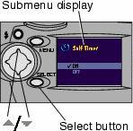 Press the Select button to display the submenus for the highlighted menu, and to accept a highlighted submenu option.