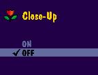 The Close-up setting reverts to Off when you turn off the camera.