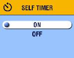 The Self Timer creates a 10-second delay between the time you press the Shutter button and the time the picture is taken.