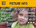 , then press the Select button. The information about the displayed picture is view-only and includes: file name, location of the file if stored on a card (there are no directories in internal memory), date and time the picture was taken, and the quality setting. |