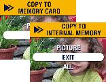 You can copy pictures from a card to internal memory, or from internal memory to a card.