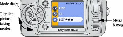 Press the Menu button to access optional picture-taking settings. All menu options are not available in all modes.