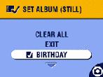 To remove a selection, highlight an album name and press the OK button. To remove all album selections, select Clear All.
